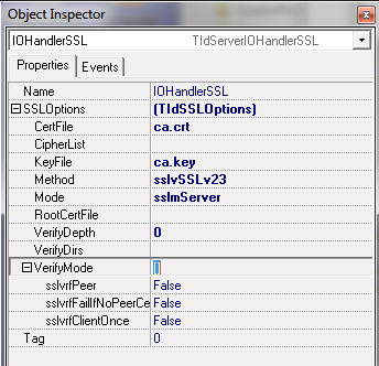 Но что делать, если необходимо, чтобы сертификат и ключ были “вшиты” в приложение? Я использую следующую технику - после загрузки и инициализации библиотеки ssleay32.dll подменяю указатели на функции IdSslCtxUseCertificateFile и IdSslCtxUsePrivateKeyFile (они объявлены в IdSSLOpenSSLHeaders) на мои реализации этих функций, которые читают сертификат и ключ не из файлов, а из памяти.