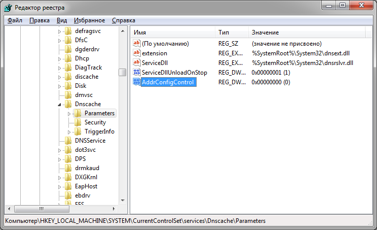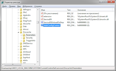 HKEY_LOCAL_MACHINE\SYSTEM\CurrentControlSet\services\Dnscache\Parameters